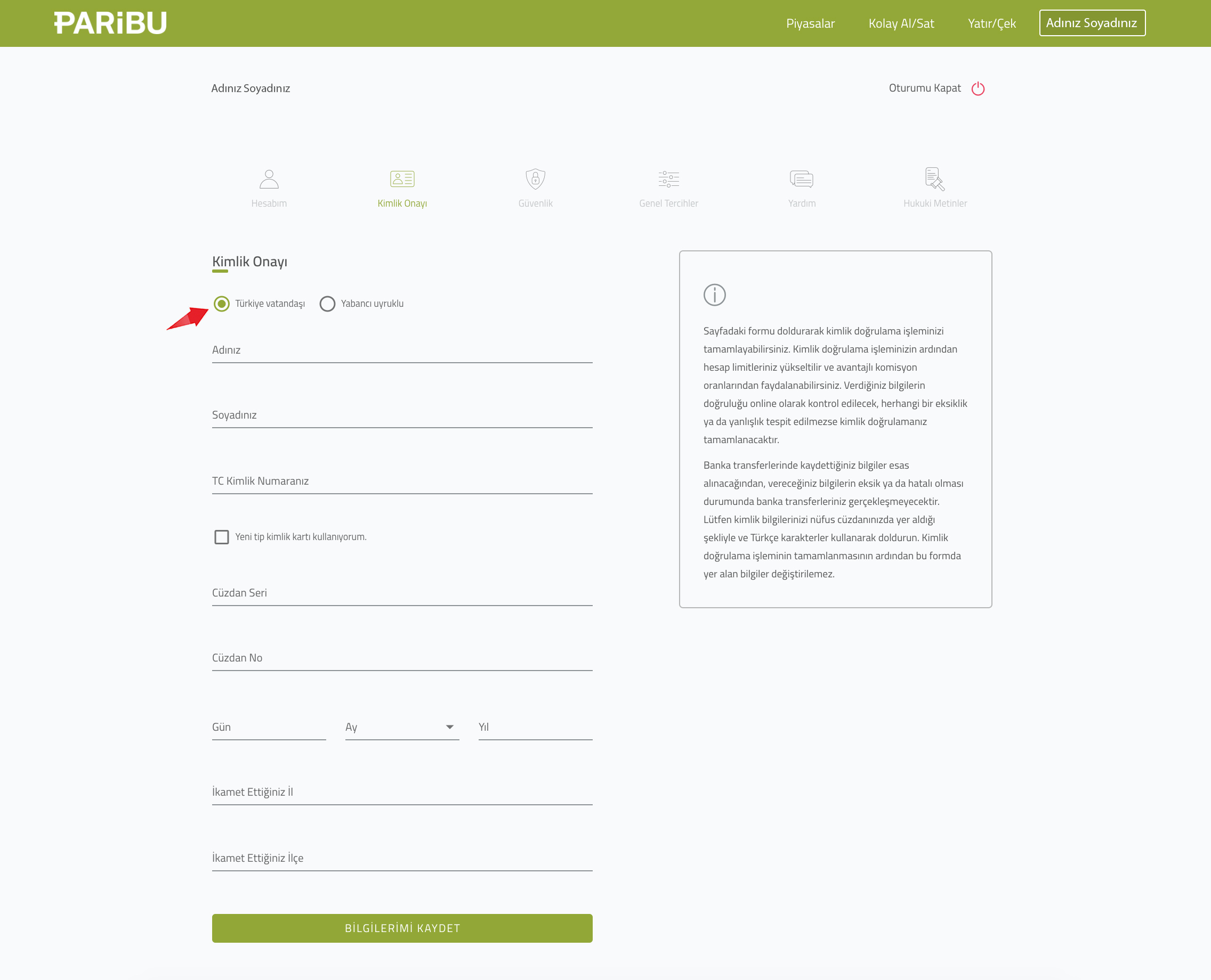 Bitcoin Nasıl Alınır 2.Adım – Kimlik Doğrulama